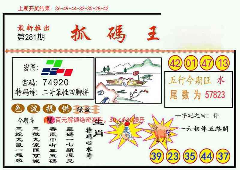 【精解抓码王】开(羊47) 281期:二哥笨性四脚拼 【主攻抓肖】猪牛羊鼠兔鸡虎猴蛇 【抓码尾数】23578 【抓码双波】蓝绿波 |